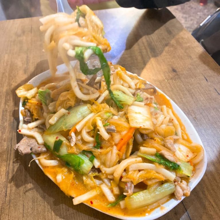 【三重美食】五華街老店烏龍麵/臺南意麵—CP值破表的老店 當天抵達店裡的時間約為晚上7點,此時外面已經有多位客人在等待外帶餐點,所幸店內還有一桌空位,當日我們點了豬肝湯、泡菜炒烏龍麵、蝦仁蛋炒飯及炒青菜,店內規模並不大,在用餐時會感到有些擁擠,以下就這幾道菜分別評論